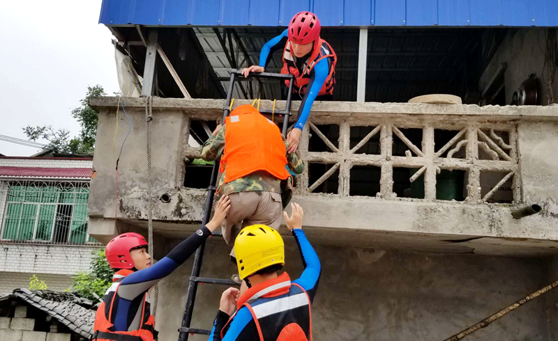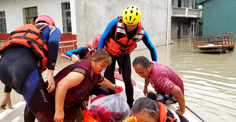 7月11日,重庆潼南区受涪江上游强降雨影响,全区受洪严重。11日下午,潼南区防汛抗旱指挥部立即启动Ⅰ级防汛应急预警、Ⅱ级应急响应。11日晚,大渡口消防支队王旭辉支队长带队,迅速出动一辆抢险救援车,一辆战勤保障车,一艘冲锋舟,11名官兵连夜奔赴潼南受灾区展开救援支援。